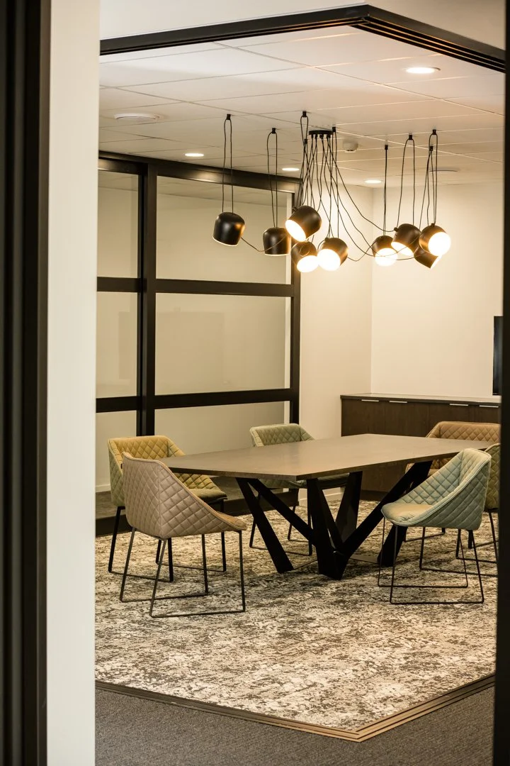 aligning finishes so the space felt intentional - not like a warehouse with desks dropped in